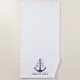 Nautical anchor navy blue and white custom monogram initials & names modern elegant chic Beach Towel.