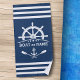Nautical Anchor Oars Helm Your Name Blue & White Beach Towel