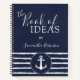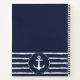 Create a personalized navy blue and white nautical notebook for ideas and plans with the stylish typography, anchor and stripes design. Type your name by using the template to create a unique present for your loved ones. Stripes have a hand-drawn look.