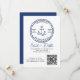 Modern Wedding Save the Date with QR Code and nautical theme. This save the date invitation card features your wedding date and location, set into a boating theme logo in traditional blue and white. The template is set up for you to add your wording and wedding website url for the qr code.