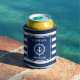 Nautical Anchor Rope Helm Blue Striped Captain Can Cooler