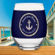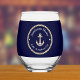 Nautical Anchor Rope Navy Blue White Monogram Name Stemless Wine Glass