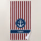 Nautical Anchor Rope Navy Red White Stripes Custom Beach Towel