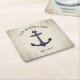 Nautical Anchor Rustic Wood Boat Name Square Paper Coaster