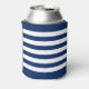 Nautical Anchor and Seahorse with your Personalized Name or Boat Name on a Navy Blue striped Can Cooler.
