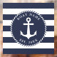 This square nautical window cling (window decal) is easy to personalize with the boat name, year, or another text. The design features a white anchor and text templates with a rope circle on a navy blue and white striped pattern. Smaller and larger sizes are available, please choose the best option for you before ordering.