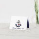 Navy blue and red anchor thank you notes and custom and personalized thank you cards perfect for a birthday, baby, wedding or bridal shower with a nautical or beach theme. A blue anchor with a star and red heart hangs from a golden rope. Printed red stitched ribbon look design with a diagonal navy blue and white stripe border. Artwork © Chrissy H. Studios, LLC. All Rights Reserved.