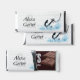 Nautical black anchor and chain splashing in blue water on whitewashed wood with newlywed names and wedding date.