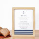 Designed to match our Nautical Mix wedding collection, this elegant coastal style sign is perfect for placing at your reception to display the evening's menu selections. Personalize the header and and text fields, adorned with a trio of nautical navy blue stripes and an anchor at the top.