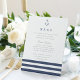 Designed to match our Nautical Mix wedding collection, this elegant coastal style sign is perfect for placing at your reception to display the evening's menu selections. Personalize the header and and text fields, adorned with a trio of nautical navy blue stripes and an anchor at the top.