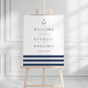 Designed to match our Nautical Mix wedding collection, this elegant coastal style sign is perfect for welcoming guests to your wedding ceremony or reception. Personalize the text fields with your welcome message, names and wedding date, adorned with a trio of nautical navy blue stripes and an anchor at the top.