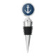 Nautical anchor wine stoppers with custom text or monogram. Personalized wine stoppers with elegant script typography. Fancy wine corks monogrammed with name or initial letters. Cute sailing / maritime / beach wedding favor gift idea for guests. Make your own unique initialed stopper for guests, bride and groom / newly weds couple. Chic script letters. Customizable colors ie navy blue and white. Double sided design with boat / ship anchor aweigh.