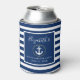 Nautical Anchor with Gold Ring Bachelorette Party Can Cooler with Navy Blue and White Stripes