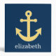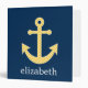 Nautical Anchor with Navy Yellow Chevron Pattern Binder