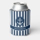 Nautical Anchor with Rope on Navy Blue Stripes Can Cooler