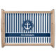 Nautical Anchor with Rope on Navy Blue Stripes Serving Tray