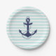 Nautical Aqua & White Stripes Navy Blue Anchor Paper Plates
