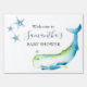 Welcome guests in style with this ocean-inspired baby shower welcome sign, featuring a watercolor whale and starfish in soothing shades of blue. Perfect for baby shower boy themes, this nautical design adds a sweet, seaside touch to your summer baby shower at home—ideal for a second baby or first-time celebration.