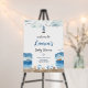 This sign features watercolor nautical designs, including anchors, ropes, and compasses, in beautiful shades of the blue sea. The elegant typography complements the design perfectly, creating a cohesive look that sets the tone for your nautical-inspired baby shower.