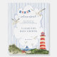 Greet your guests in coastal style with this Ahoy Little Sailor baby shower welcome sign. Featuring soft watercolor artwork of a red-striped lighthouse, soaring seagulls, and classic blue and white stripes, this sign is the perfect way to set the tone for your nautical celebration.