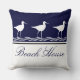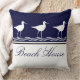 Nautical Beach house navy blue Sandpipers Throw Pillow