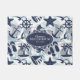 This doormat features a fun summer pattern of nautical elements including anchor, seagull, starfish and many more, all in navy blue with swirls and wavy aqua blue accents. Add your name and/or other text using the provided template. Search ID839 and ID840 to see other products with this design and additional color options.