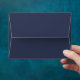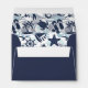 This envelope features a fun summer pattern of nautical elements including anchor, seagull, starfish and many more, all in navy blue with swirls and wavy aqua blue accents. The exterior is an optional coordinating navy blue. Search ID839 and ID840 to see other products with this design and additional color options.