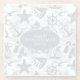 This glass coaster features a fun summer pattern of nautical elements including anchor, seagull, starfish and many more, all in navy blue with swirls and wavy aqua blue accents. Add your name and/or other text using the provided template. Search ID839 and ID840 to see other products with this design and additional color options.