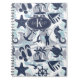 This lined notebook features a fun summer pattern of nautical elements including anchor, seagull, starfish and many more, all in navy blue with swirls and wavy aqua blue accents. Add your name and/or other text using the provided template. Search ID839 and ID840 to see other products with this design and additional color options.