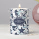 This pillar candle features a fun summer pattern of nautical elements including anchor, seagull, starfish and many more, all in navy blue with swirls and wavy aqua blue accents. Add your name and/or other text using the provided template. Search ID839 and ID840 to see other products with this design and additional color options.