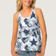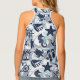 This all-over print tank top features a fun summer pattern of nautical elements including anchor, seagull, starfish and many more, all in navy blue with swirls and wavy aqua blue accents. Search ID839 and ID840 to see other products with this design and additional color options.