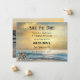 An original Save the Date card featuring a painting of a golden sunset at the beach. The QR code template can be easily customized by adding your own url. The back shows your custom photo. Beautiful for a planned destination or beach wedding or a wedding with a nautical theme.