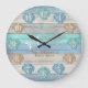 Nautical Beach Wood with Turtles & Shells Large Clock