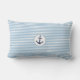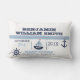 This birth commemoration pillow feature a cute sail boat, anchor, rope and helm. The design also includes a light blue sash and a few dividing lines. The back of the pillow features a striped light blue and white pattern and an anchor. The pillow is ready to be personalized and is ideal as a nursery birth commemoration pillow and is particularly suitable for a nautical theme room.