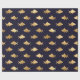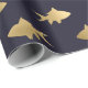 Gift wrap featuring a faux gold fish pattern with a black background.