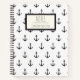 Nautical Black White Anchor Pattern Personalized Notebook