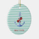 Nautical,Blue Anchor,Mint Green Stripes Ceramic Ornament
