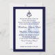 Plain white envelopes are included with paper invitations and will come to fit the invitation size you select. If you don’t need the envelopes, you may choose to not receive them by selecting the dropdown below "Envelopes" and choosing "None." If you’d like to have a design on your envelopes, you can browse all of these available envelopes to find the design that complements your Nautical Blue Anchor Monogram Wedding Invitations.