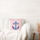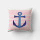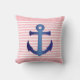 Nautical Blue Anchor On Pink White Stripe Pattern Throw Pillow