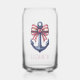 Nautical Blue Anchor With Red and White Stripe Bow Can Glass