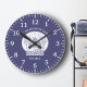 Elevate your coastal decor with our stunning Nautical Blue Beach House White Family Name Summer Round Clock! Bring the serene beauty of the seaside into your home with this charming clock, featuring a captivating blue background texture that sets the perfect backdrop for its nautical-themed design. At the heart of the clock, a delightful Beach House logo in crisp white steals the show, depicting swaying palm trees, tranquil sea waves, and a picturesque family cottage. Above the logo, your family name is elegantly curved in white typography, adding a personalized touch to your decor. Below, the established year is displayed in the same minimalist style, celebrating cherished memories and seaside traditions.