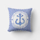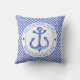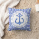 NewparkLane - Nautical Throw Pillow, with a blue and white gingham pattern and an anchor in a circular white frame. Add your family name or other personal text in the frame around the anchor.