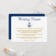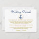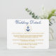 Plain white envelopes are included with paper invitations and will come to fit the invitation size you select. If you don’t need the envelopes, you may choose to not receive them by selecting the dropdown below "Envelopes" and choosing "None." If you’d like to have a design on your envelopes, you can browse all of these available envelopes to find the design that complements your Nautical Blue Gold Wedding Details Insert Invitation.