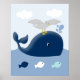 Nautical Blue Teal Gray Whale Nursery Art Print 4 of a set of 4. See matching prints in my Zazzle store.