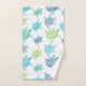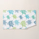 Turquoise blue & green marine turtles pattern set on a white background bathroom towel. Visit our shop to view our beautiful selection of bath towel sets.