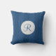 Nautical Blue Monogram Thin Chevron Pattern Throw Pillow