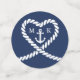 Nautical blue and white round wedding table confetti. Great for a Navy (military) or lake house wedding. Design features a heart shaped rope with anchor and couple initials in the middle and stripes. Personalize it with your wedding details.