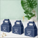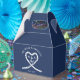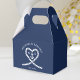 Nautical blue and white wedding favor box for a bride and groom. Great for a Navy (military) or lake house wedding. Design features a heart shaped rope with anchor and couple initials in the middle. Personalize it with your wedding details.