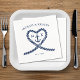Nautical blue and white wedding napkins. Great for a Navy (military) or lake house wedding. Design features a heart shaped rope with anchor and couple initials in the middle. Personalize it with your wedding details.