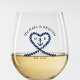 Nautical Blue Rope Heart Anchor Monogram Wedding Stemless Wine Glass